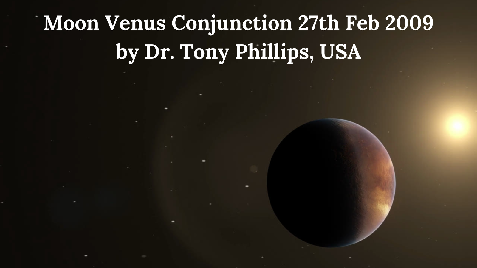 Right: A Moon‐Venus conjunction in Dec.2008 photographed by Tamas Ladanyi of Mönichkirchen, Austria. This month’s conjunction will be even tighter and brighter.